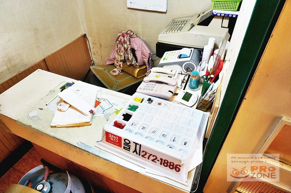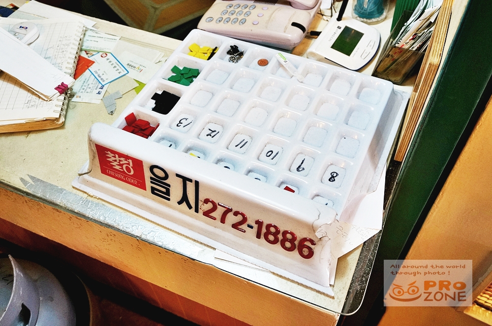 요즘의 포스(POS) 주문 컴퓨터를 대신해서 70~80년대 주문판을 그대로 사용하고 있는 을지다방.