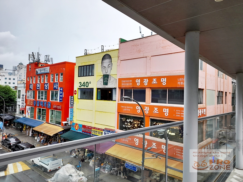 대림상가와 세운상가를 잇는 다리에서 바라본 카페 앵글 340˚