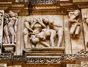 [인도] 카주라호 외벽 힌두 사원의 심오한 에로틱 자세 조각들 / 카마수트라의 힌두교적 반영 인도 카주라호 외벽 사진 - 힌두교 사원의 성교 자세 조각 자세히 보기 / 카마수트라 저자 바짜야나 2009년 2월 카주라호 사원 외벽 - 락쉬마나 사원의 성교 체위 자세히 촬영. 크리에이티브한 교합 자세들. 카주라호 외벽의 역동적인 교접 자세. 상상 초월한 교접. 인도 힌두교의 섹스와 철학에 관해서 더 자세히 알고 싶은 분들께서는 아래 도서를 읽어보세요! - 카마수트라 / 바짜야나 / 동문선 - 힌두교의 그림언어 / 페터 카일 하우어, 안넬리제 / 동문선 - 카마수트라, 인생에 답하다 / 폴커 초츠 / 라이프맵 - 사리 속치마를 벗기다 / 오화석 / 매경출판 - 유혹, 아름답고 잔혹한 본능 / 린다 손탁 / 청림출판 2015. 8. 14. [인도] 카주라호 사원 외벽의 에로스 충만한 조각상들 서쪽 사원군 조망 / 사랑의 경전 카마수트라의 기원 인도 배낭여행, 카주라호 사원 외벽 - 조각상 서쪽 사원군, 사랑과 성性의 경전 카마수트라 Kama Sutra 2012년 2월 인도 마드야 프라데쉬 카주라호의 서쪽 사원군 - 카주라호 사원 외벽 사진. "북인도 최고의 사원 유적지. 인도를 모르는 사람에게도 타지마할과 함께 '야한 사원'으로 알려져 있는 명소 중의 명소다. 실제로 카주라호에는 어지간한 야함을 섭렵한 고수들조차 당황스럽게 하는 조각상들이 여행객들을 반기고 있다. 지금은 궁색한 시골 벽촌의 전형적인 모습을하고 있는 카주라호지만, 한 때 이 일대는 찬델라라는 이름을 가진 한 왕조의 수도였다. 인도 역사상 사원 건설을 제외하고는 별다른 인상을 남기지 못한 찬델라 왕조는 카주라호 일대에 무려 85개의 사원을 건설, 도시 전체를 사원판으로 만들었다고.. 2015. 8. 1. [인도] 카주라호 힌두교 사원 외벽의 에로틱한 남녀 교합 미투나상 약간 멀리서 보기 인도 여행 카주라호 조각, 카주라호 힌두교 사원 외벽의 미투나 조각상 2012년 2월 인도 카주라호 외벽 - 서쪽 사원군 외벽. "현재의 카주라호 유적들은 1,000여 년 전 이 일대에서 번영을 누렸던 찬델라 왕조 Chandela Dynasty에 의해 건설되었다. 찬델라 왕조는 달의 신 찬드라 Chandra의 후손이라고 믿는 라지푸트 Rajput 족에 의해 세워진 왕조. 시조는 어린 시절 사자를 맨손으로 때려죽인 일로 유명한 찬드라 뜨레야 Chandra Trreya. 찬드라 뜨레야가 탄생하게 된 데에는 다음과 같은 전설이 전해져 온다. 찬드라 뜨레야의 어머니는 헤마와티 Hemavati라는 미모의 공주. 자신의 아름다움을너무나 과시한 탓에 인드라 Indra 신의 저주를 받아 16세에 과부가 된 비운의 여인.. 2015. 7. 30. [인도] 카주라호 락쉬마나 사원 외벽의 미투나상 / 힌두교 인도신, 상징, 에로티시즘 조각 예술 카주라호 미투나상 : 힌두교 인도신, 힌두교의 상징, 인도 에로티시즘 2012년 2월 카주라호 서쪽 사원군 락쉬마나 사원 Lakshmana Mandir. 락쉬마나 사원 Lakshmana Mandir "비쉬누신에게 봉헌된 사원. 사부 사원군 중에서 보존 상태가 가장 좋은 곳 중 하나로, 칸다리야 마하데브, 비쉬와나트 사원과 함께 서부 사원군 3대 사원으로 손꼽힌다. 춤추는 요정인 압시라 조각과 군악대를 동반한 말과 코끼리의 행렬을 묘사한 조각이 특히 유명하다. 락쉬마나 사원의 미투나는 기단 부분에 작게 조각되어 있다. 1:1 배율의 커다란 조각과는 다른 묘한 관능미가 느껴지는 데다 숨은그림찾기를 하는 듯한 잔재미도 즐길 수 있다. '말과 성행위를 하는 남자와 이를 지켜보는 남자상'은 카주라호에서 가장 하드.. 2015. 7. 29. [인도] 리쉬케쉬 갠지스 강에서 뿌자 의식을 거행하는 고행수행자 사두 1 / 북인도 우타란찰 인도 여행 리쉬케쉬의 고행 수행자 사두 2009년 12월 북인도 우타란찰 리쉬케쉬의 갠지스(Ganga 강가) 강. 리쉬케쉬 Rishikesh에 관하여 1 "해발 356m에 자리한 리쉬케쉬는 히말라야의 관문이자 힌두교 성지로 유명한 도시. 힌두교도 사이에서만 이름이 알려져 있던 리쉬케쉬가 세계적인 명상 도시로 발돋움하게 된 것은 1960년대 말부터. 당시 서구의 젊은이들은 이라는 말로 함축되는 낭만적인 반전, 민권 운동이 실패로 돌아가 짙은 허무 의식에 사로잡혀 있던 시절. 좌절감에서 벗어나고자 인간의 내면 탐구에 눈을 돌렸던 젊은이들에게 인도와 리쉬케쉬, 그리고 그곳에 살고 있는 수행자들은 마음의 평화를 주는 구세주와도 같았다...후략..." ☞ 다음 글에서 이어집니다 -「프렌즈 인도·네팔」248쪽 - 2015. 7. 19. [인도] 리쉬케쉬 갠지스 강에서 뿌자 의식을 거행하는 고행수행자 사두 2 / 비틀즈 수행 명상 성지 인도 여행 북인도 리쉬케쉬 - 비틀즈가 스승 마하라쉬 마헤쉬를 모시고 명상 수행을 했던 힌두교 성지 2009년 12월 북인도 명상 도시 리쉬케쉬의 갠지스 강에서 뿌자 의식을 거행하는 고행수행자...사두 Sadhu. 리쉬케쉬 Rishikesh에 관하여 2 "특히 당시 젊은이들의 우상이던 영국 출신의 세계적인 뮤지션 비틀즈Beatles가 요기Yogi 마하리쉬 마헤쉬 (Maharish Mahesh 1918.1.12~2008.2.5)의 메시지에 심취. 리쉬케쉬에 머문 사실이 밝혀지며 이곳의 인기는 폭등하게 됐다. 사실 현재의 리쉬케쉬는 진정한 의미의 성지로 보기에는 세속적인 느낌이 많다. 하지만 맑고 푸른 강가와 사