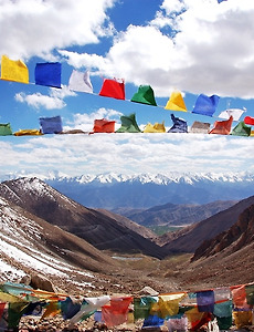[인도] 해발 3,500m 히말라야 계곡에서 펄럭이는 기도깃발 / 라다크 레 2009년 6월. 해발 3,500m 레 Leh 계곡의 기도 깃발. 저 멀리 펼쳐진 히말라야의 광활한 산맥. 2014. 3. 21.