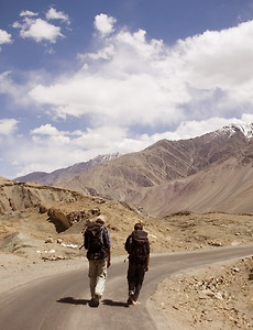[인도] 레 산길을 걷는 영국 여행자들의 뒷 모습 / 라다크 레 Ladakh Leh 2006년 5월. 라다크 레 산길을 걸어가고 있는 배낭 맨 영국 여행자들. 2014. 3. 31.