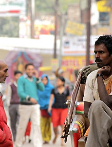 [인도] 릭샤 왈라와 노인과 백바지 / 바라나시 2012년 1월.바라나시. 손님을 기다리는 릭샤왈라와 노인, 그리고 전화 통화하고 있는 백바지 남자. 하층민-서민-부유민이 한 화면에 저마다의 삶의 표정으로 사진에 담긴 우연한 촬영. 2014. 3. 22.