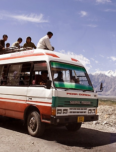 [인도] 레 시내와 곰파를 잇는 시외버스 / 라다크 2006년 6월. 레에서 라마유르 곰파로 시외버스 타고 가는 길. 한국에서는 자동차 외부에 승차해서 가는 것이 불법이기 때문에 그럴 수 없지만, 인도는 아주 보편적인 라이프 스타일. 2014. 4. 2.
